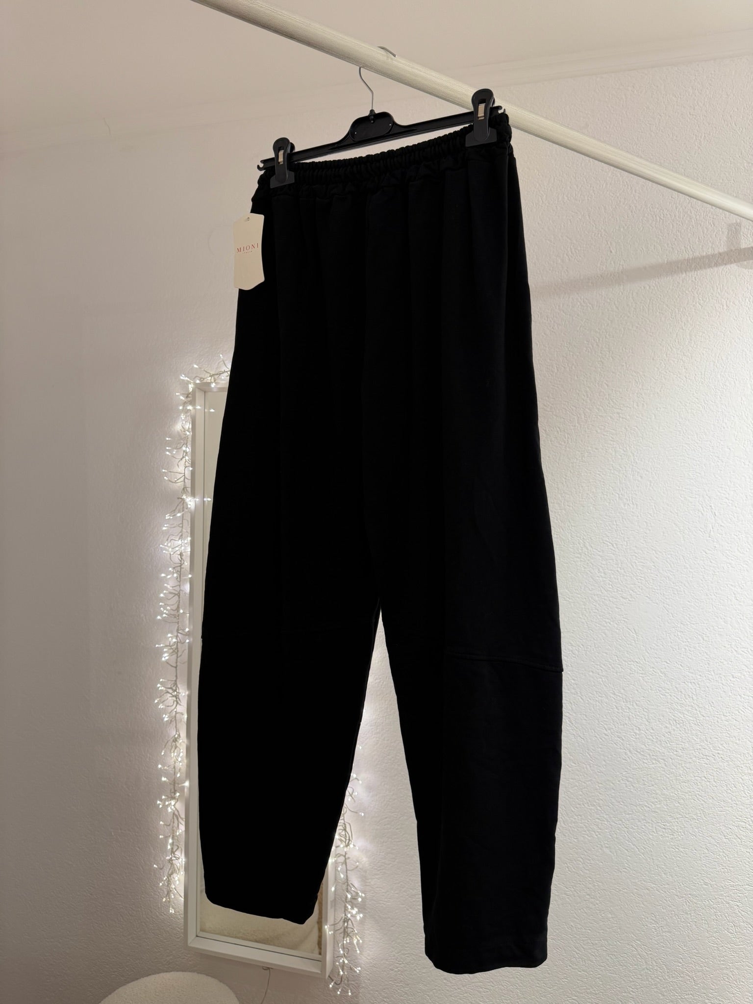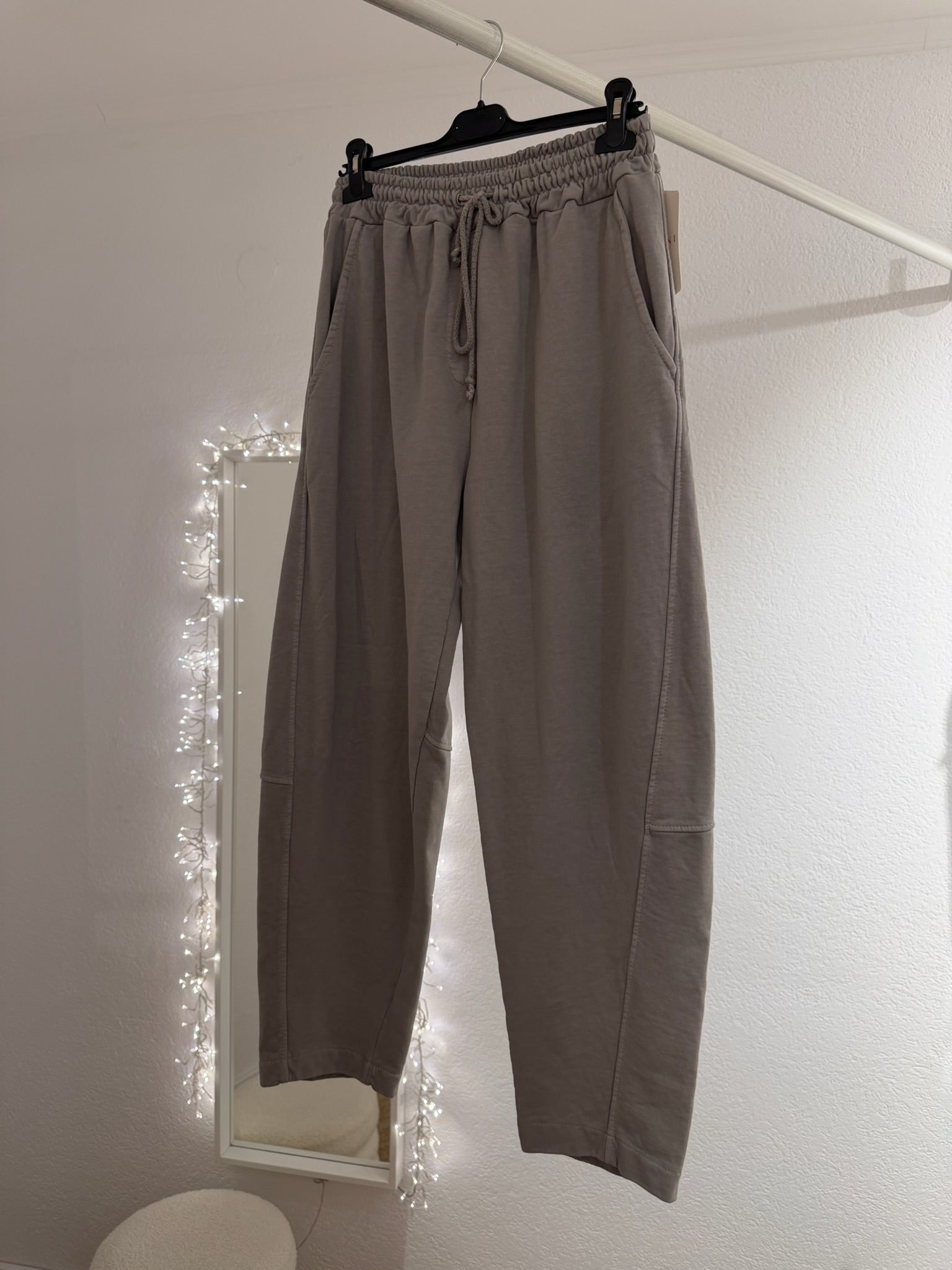 Bequeme Jogginghose im lässigen Casual-Look – perfekt für entspannte Tage oder stylische Streetwear-Outfits. Die Hose überzeugt mit elastischem Bund und Kordelzug, seitlichen Eingrifftaschen sowie einer lockeren, leicht konisch zulaufenden Passform. Der hohe Baumwollanteil sorgt für ein angenehmes Tragegefühl. Erhältlich in klassischen und soften Trendfarben wie Schwarz, Beige, Mint und Grau. Hergestellt in Italien.