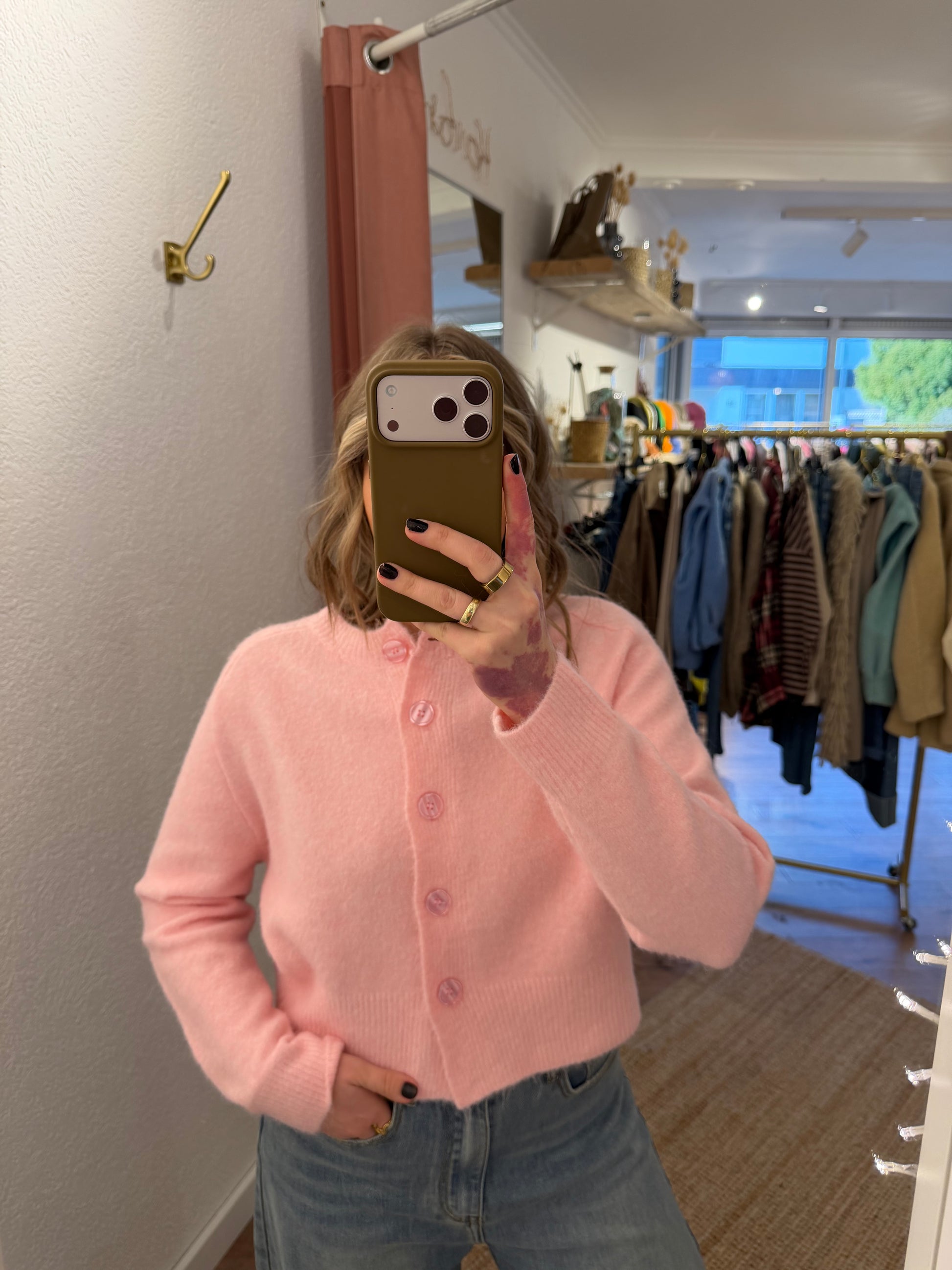 Kurz geschnittener Cardigan mit weicher, flauschiger Oberfläche und klassischem Knopfverschluss. Das Modell überzeugt durch seinen angenehmen Griff, eine lockere Passform und lässt sich vielseitig kombinieren – sowohl offen als auch geschlossen getragen. Ideal für Alltag, Büro oder als leichter Begleiter in der Übergangszeit.