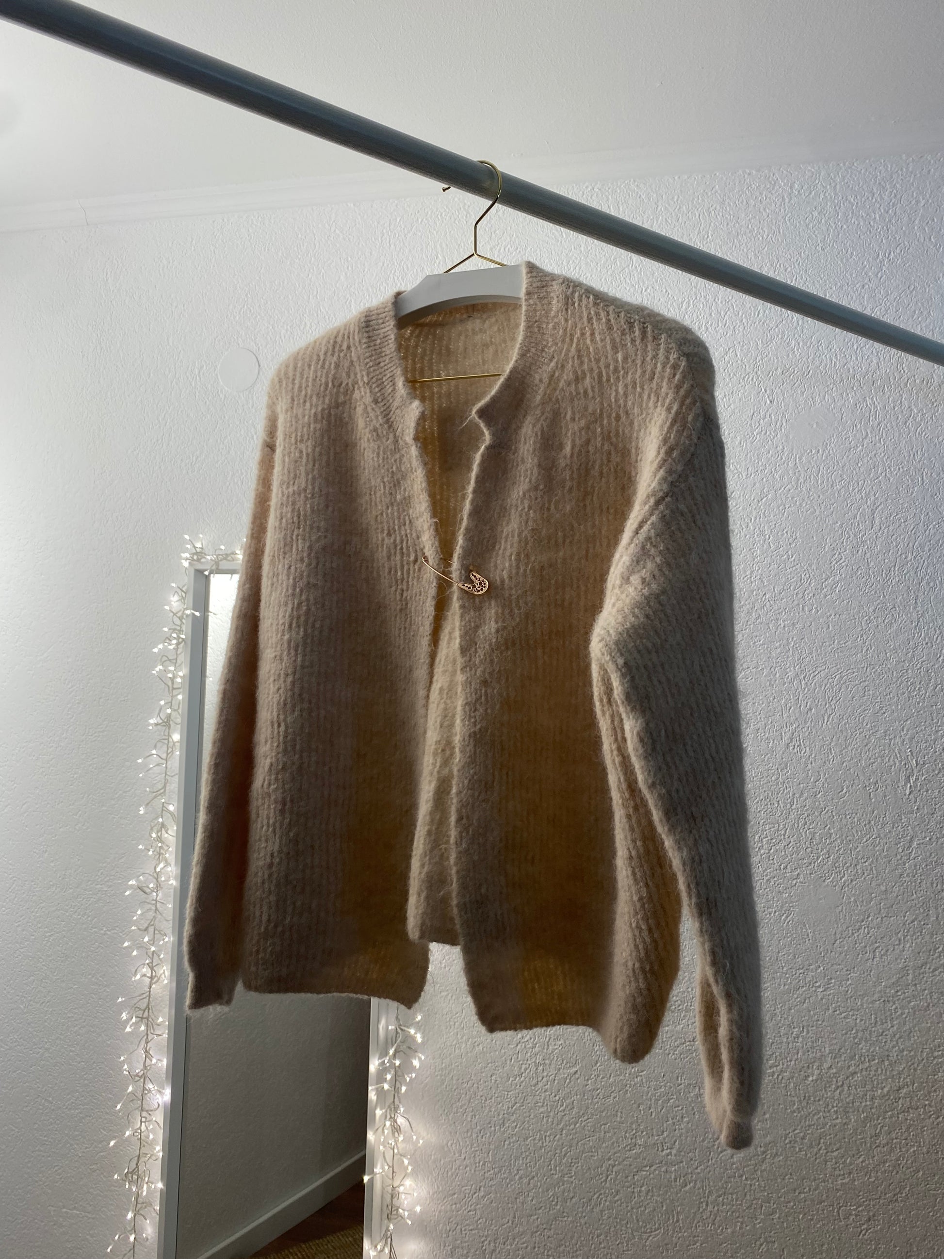 Strickjacke mit goldener Sicherheitsnadel